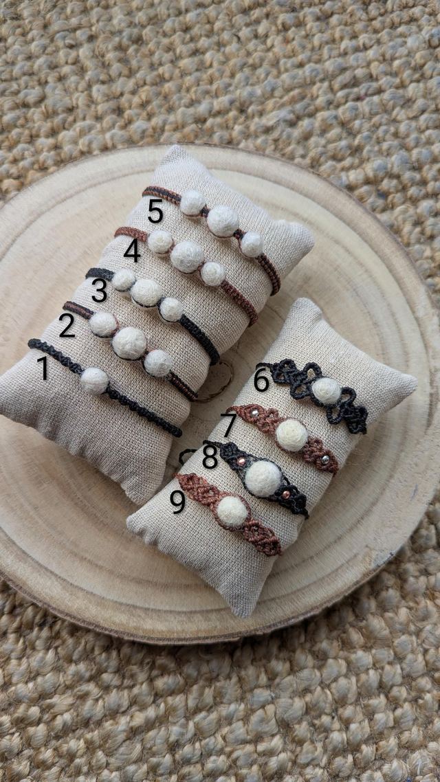 Voici la nouvelle collection de bracelets en macramé ornés de perles de laine.